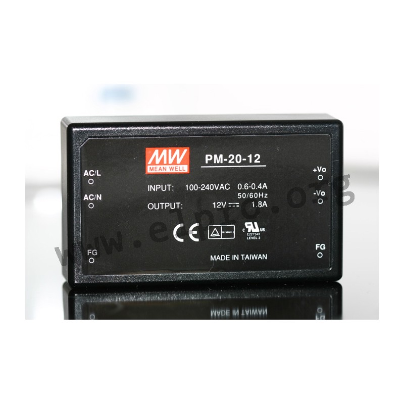 Schaltnetzteile im geschlossenen Gehäuse (PCB) mit 21W, geringer Leerlaufleistung und Universaleingang. Diese Geräte sind für medizinische Anwendungen geeignet (2xMOPP) und gegen Überlast (auto recovery) sowie Kurzschluss geschützt. Sie sind für die Montage auf Leiterplatten geeignet und entsprechen EN60601-1. Wir bieten die Ausführung PM-20-15 dieser Mean Well Serie an.
