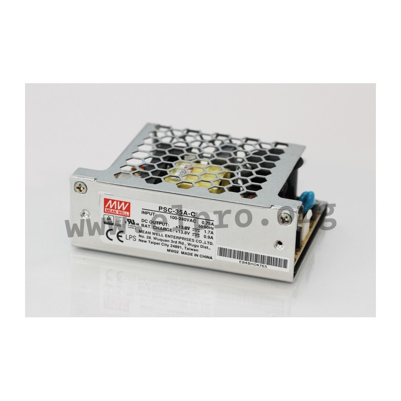 Schaltnetzteile in offener (PSC-35_) und geschlossener Bauform (PSC-35_-C) mit 35W, USV-Funktion (Batterielader), Power-Fail-Signal, Batterie-Low-Signal und Universaleingang. Diese Geräte verfügen über einen Akku-Tiefentladeschutz und sind gegen Überlast (auto recovery), Überspannung sowie Kurzschluss geschützt. Sie sind lüfterlos designt und entsprechen UL/EN62368-1, EN55032 Klasse B, EN61000-3-2 sowie EN61000-3-3. Wir bieten die folgenden Ausführungen dieser Mean Well Serie an: PSC-35A, PSC-35B, PSC-35A-C und PSC-35B-C.