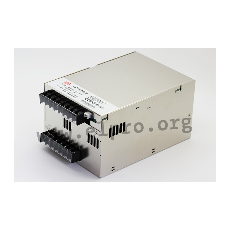 Schaltnetzteile im geschlossenen Metallgehäuse mit 1000W, Parallel-Funktion, Sensoranschluss für korrekte Spannung an der Last, Schraubanschlüssen, Remotesignal zum Ein-/Ausschalten, Lüfter und Universaleingang. Diese Geräte verfügen über einen eingebauten PFC-Schaltkreis und sind gegen Überlast, Übertemperatur, Überspannung sowie Kurzschluss geschützt. Sie sind für eine Stromaufteilung von bis zu 4000W (3+1 Netzteile) geeignet und entsprechen UL/EN62368-1, EN55032 Klasse B, EN61000-3-2 sowie EN61000-3-3. Wir bieten die folgenden Ausführungen dieser Mean Well Serie an: PSPA-1000-12, PSPA-1000-15, PSPA-1000-24 und PSPA-1000-48.
