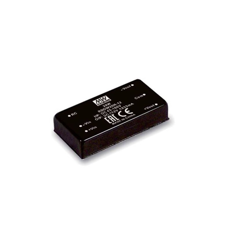 DC/DC-Spannungswandler im 2"x1"-DIL-Gehäuse mit 20W, Remotesignal zum Ein-/Ausschalten und Eingangsspannungsverhältnis 4:1. Diese Geräte sind für Anwendungen der Bahnindustrie geeignet und gegen Überlast, Eingangs-Unterspannung, Überspannung sowie Kurzschluss (kontinuierlich) geschützt. Sie erfordern keine Mindestlast, sind für die Montage auf Leiterplatten geeignet und entsprechen EN50155, EN55032 Klasse A sowie EN55032 Klasse B. Wir bieten die folgenden Ausführungen dieser Mean Well Serie an: RDDW20F-05, RDDW20F-12, RDDW20F-15, RDDW20G-05, RDDW20G-12, RDDW20G-15, RDDW20H-12 und RDDW20H-15.