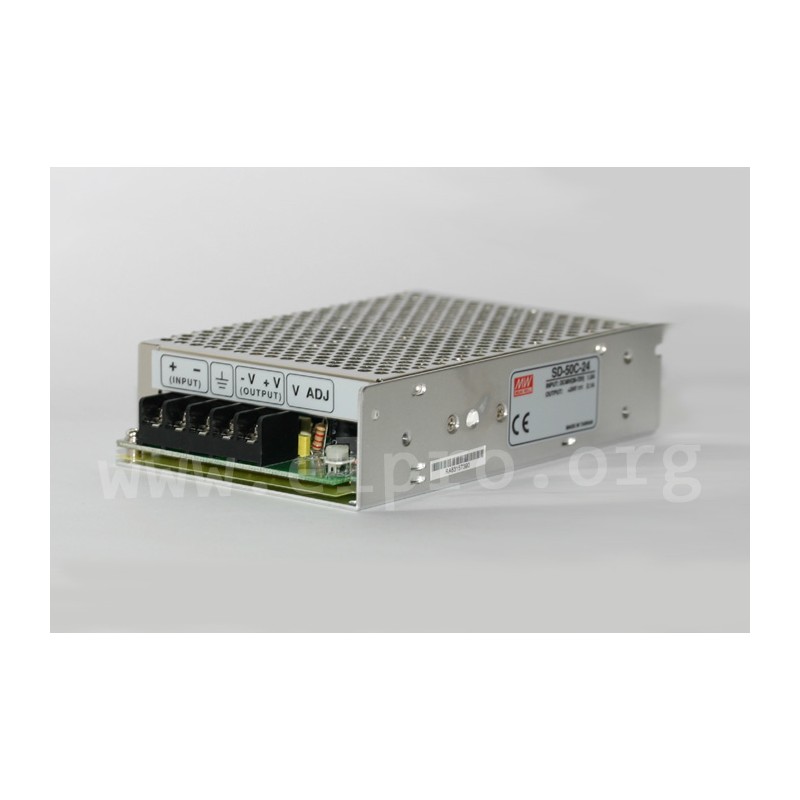 DC/DC-Wandler im geschlossenen Gehäuse mit 50W, Eingangsspannungsverhältnis 2:1 und Schraubanschlüssen. Diese Geräte verfügen über eine galvanische Trennung von Ein-/Ausgang und sind gegen Überlast (auto recovery), Überspannung sowie Kurzschluss geschützt. Sie haben eine geregelte Ausgangsspannung, eingebaute EMI-Filter und entsprechen EN55032 Klasse B sowie EN55024. Wir bieten die folgenden Ausführungen dieser Mean Well Serie an: SD-50A-5, SD-50A-12, SD-50A-24, SD-50B-5, SD-50B-12, SD-50B-24, SD-50C-5, SD-50C-12 und SD-50C-24.