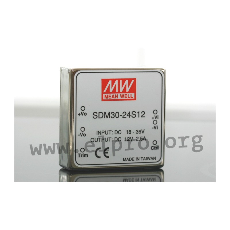 DC/DC-Wandler im 2"x2"-DIL-Gehäuse mit geregelter Ausgangsspannung, Remotesignal zum Ein-/Ausschalten und Eingangsspannungsverhältnis 2:1. Diese Geräte sind für die Montage auf Leiterplatten geeignet und gegen Überlast, Überspannung sowie Kurzschluss geschützt. Sie verfügen über eine galvanische Trennung von Ein-/Ausgang und entsprechen EN55032 Klasse B sowie EN55024. Wir bieten die folgenden Ausführungen dieser Mean Well Serie an: SDM30-12S3, SDM30-12S5, SDM30-12S12, SDM30-12S15, SDM30-24S3, SDM30-24S5, SDM30-24S12, SDM30-24S15, SDM30-48S3, SDM30-48S5, SDM30-48S12 und SDM30-48S15.