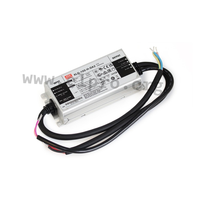 LED-Schaltnetzteile im Metallgehäuse (IP67) mit 100W, DALI 2.0-Schnittstelle, geringer Leerlaufleistung und Konstantleistung. Diese Geräte verfügen über einen eingebauten PFC-Schaltkreis und sind gegen Überspannung, Übertemperatur sowie Kurzschluss geschützt. Sie sind dimmbar, für LED-Beleuchtungsanwendungen geeignet und entsprechen EN61347-1, EN61347-2-13, EN55015, EN61000-3-2 Klasse C sowie EN61000-3-3. Wir bieten die folgenden Ausführungen dieser Mean Well Serie an: XLG-100-L-DA2 und XLG-100-H-DA2.