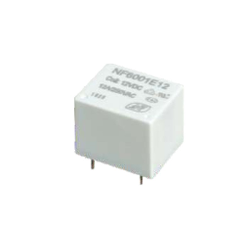 Diese Zuckerwürfelrelais haben universelle Anschlussfläche, ein UL-Isolierungsystem der Klasse F und entsprechen der Relais Schutzklasse RTII. Diese Printrelais gibt es in der Standard-Ausführung (NF6) oder in der "High temperature"-Ausführung (NF6T), sie gehören in die Materialgrupper IIIa der Isolierteile und sie haben die Überspannungskategorie II. Wir bieten die folgenden Ausführungen dieser NF Serie an: NF6-001E12, NF6-001E24, NF6T-100E12 und NF6T-100E24.