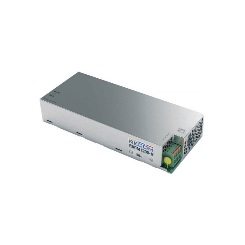 AC/DC-Wandlermodule im 9x3,8-Zoll-Gehäuse mit 1200W (Spitzenleistung), Universaleingang, einstellbarer Ausgangsspannung und Remote-Funktion. Diese Geräte sind für für Anwendungen in der Medizintechnik (2xMOPP) geeignet und gegen Überlast, Kurzschluss sowie Überspannung geschützt. Sie sind lüfterlos designt und entsprechen IEC62368-1, EN62368-1, UL62368-1, IEC60601-1, EN60601-1, IEC61558-1, EN61558-1, IEC60601-1-2, EN60601-1-2, EN55011 Klasse B sowie EN55032 Klasse B. Wir bieten die folgenden Ausführungen dieser Recom Serie an: RACM1200-24SAV/ENC und RACM1200-48SAV/ENC.