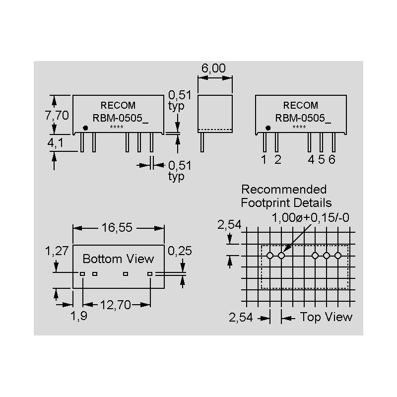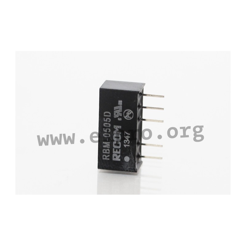 DC/DC-Wandler im SIP/SIL6-Micro-Gehäuse mit einer Leistung von 1 Watt eignen sich ideal für direkte Leiterplattenmontage. Diese Geräte sind in zwei Varianten erhältlich: RBM-_S als Single Output und RBM-_D als Dual Output. Sie haben eine Industrie-Standard-Belegung, einen Wirkungsgrad bis zu 85% und eine Isolationsspannung von 3kV DC. Die ungeregelten Wandler weisen lediglich eine ±5% Ausgangsspannungstoleranz auf sowie maximal 100mVpp Restwelligkeit. Mit einem Betriebstemperaturbereich zwischen -40°C und +85°C können sie auch bei extremen Temperaturen verwendet werden. Zudem sind diese Geräte medizinischen Anwendungen geeignet und wiegen nur leichte 1,3g pro Stück. Wir bieten die folgenden Ausführungen dieser Recom Serie an: RBM-0505S, RBM-1205S, RBM-0505D, RBM-0512D, RBM-1205D und RBM-1212D.