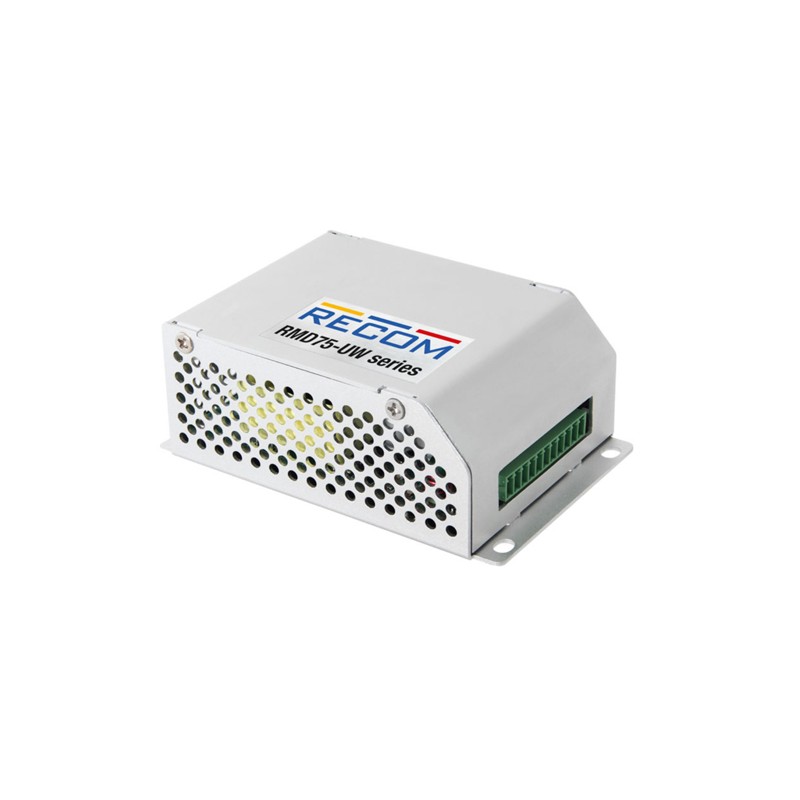 DC/DC-Wandler-Module im geschlossenen Gehäuse, mit DC-OK-Signal, Parallelfunktion, einstellbarer Ausgangsspannung und Remote Funktion. Wir bieten die RMD75-110-24SUW Ausführung dieser Recom Serie an.