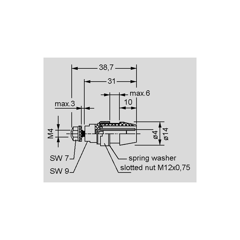 * Befestigung mittels einer Schlitzmutter M12x0,75 und einer Federscheibe (im Lieferumfang enthalten)