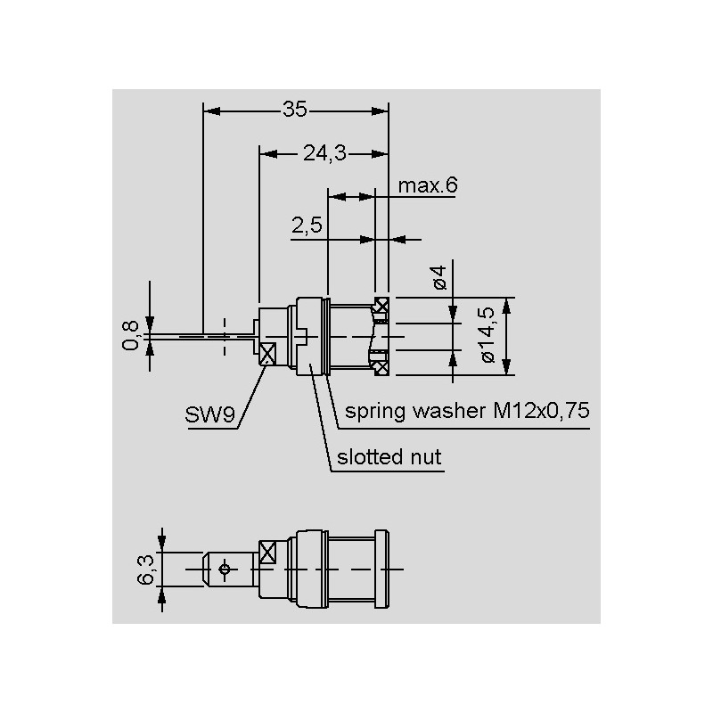 • Befestigung mittels einer Schlitzmutter M12x0,75mm und einer Federscheibe