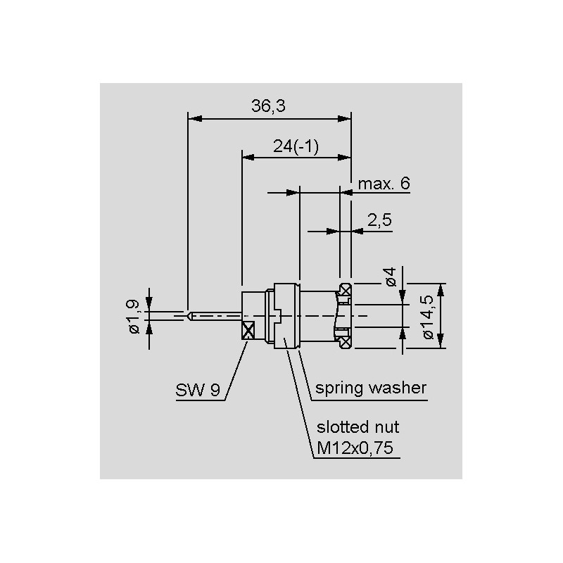 • Befestigung mittels einer Schlitzmutter M12x0,75mm und einer Federscheibe
