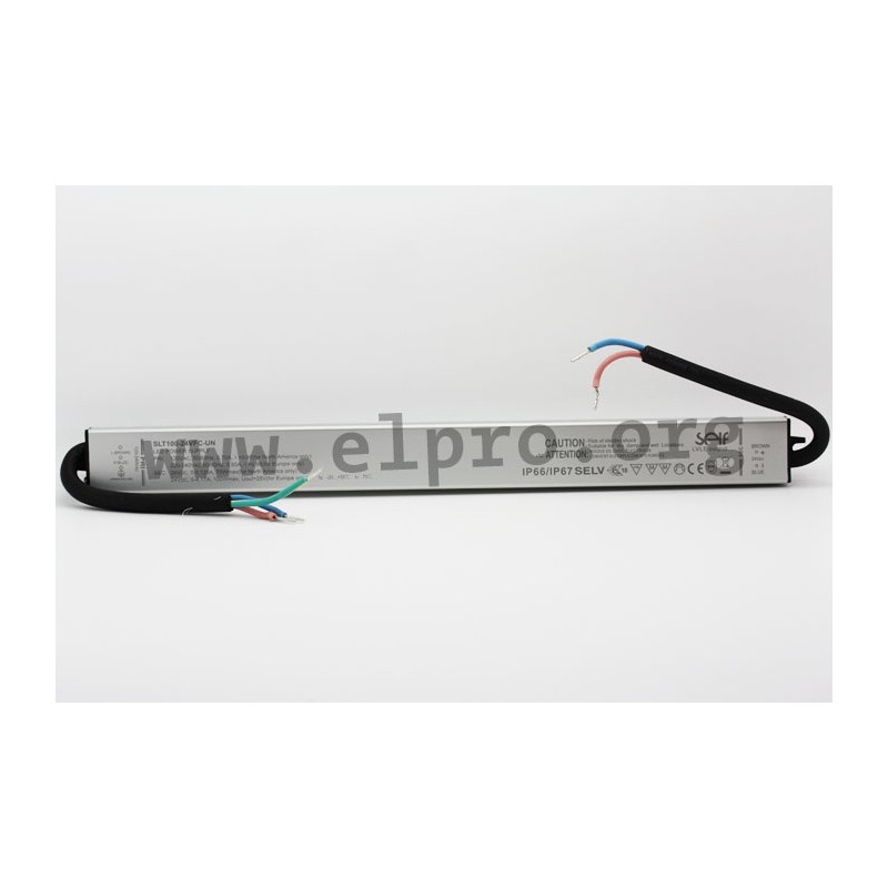 LED-Schaltnetzteile im Metallgehäuse (IP67) mit 100W, SELV-Ausgang, Konstantspannung und Schutzklasse I. Diese Geräte sind für LED-Beleuchtungsanwendungen geeignet und gegen Überlast, Kurzschluss, Überspannung sowie Übertemperatur geschützt. Sie sind nicht dimmbar und entsprechen EN61347-1, EN61347-2-13, EN55015 sowie EN61000-3-2. Wir bieten die Ausführung SLT100-24VFC-UN dieser Self Serie an.