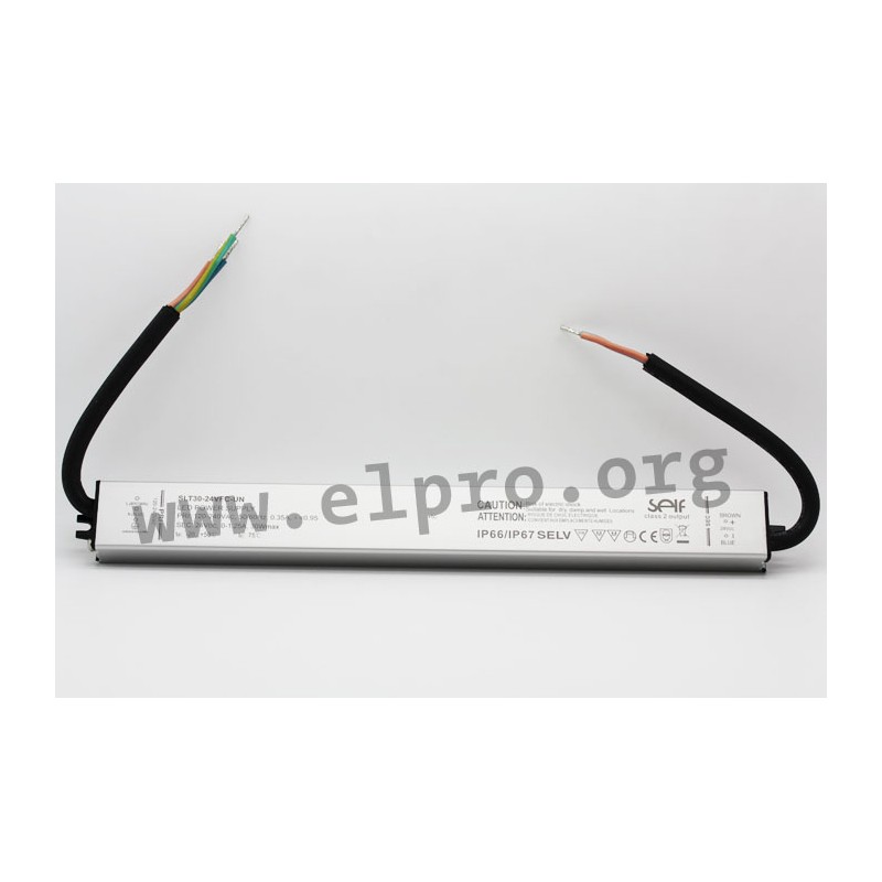 LED-Schaltnetzteile im Kunststoffgehäuse (IP67) mit 30W, Konstantspannung, SELV-Ausgang und Schutzklasse I. Diese Geräte sind für LED-Beleuchtungsanwendungen geeignet und gegen Überlast, Überspannung, Übertemperatur sowie Kurzschluss geschützt. Sie sind nicht dimmbar und entsprechen EN55015, EN61347-1, EN61347-2-13 sowie EN61000-3-2. Wir bieten die folgenden Ausführungen dieser Self Serie an: SLT30-12VFC-UN und SLT30-24VFC-UN.