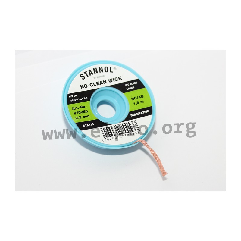 Für das ESD-sichere Entlöten und Reparatur von Lötstellen, ohne dass nachträglich gereinigt werden muss. Die Litze wird über die zu lösende Lötstelle gelegt und mit einem Lötkölben aufgeheizt. Das flüssige Zinn wird von der Entlötkupferlitze aufgenommen.