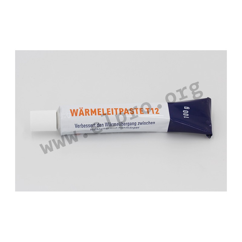 36179 WLP T12 100g 770352 770352 silikonhaltige Wärmeleitpasten. • wärmeableitendes Füllmittel zwischen den Kontaktflächen von Halbleitern und Kühlkörpern• Hersteller: Armack, amasan Wärmeleitpaste T12• chemisch neutral• weiße, undurchsichtige Silikonpaste• gute Wärmeleitfähigkeit• Temperaturbereich: -30 bis +200°C