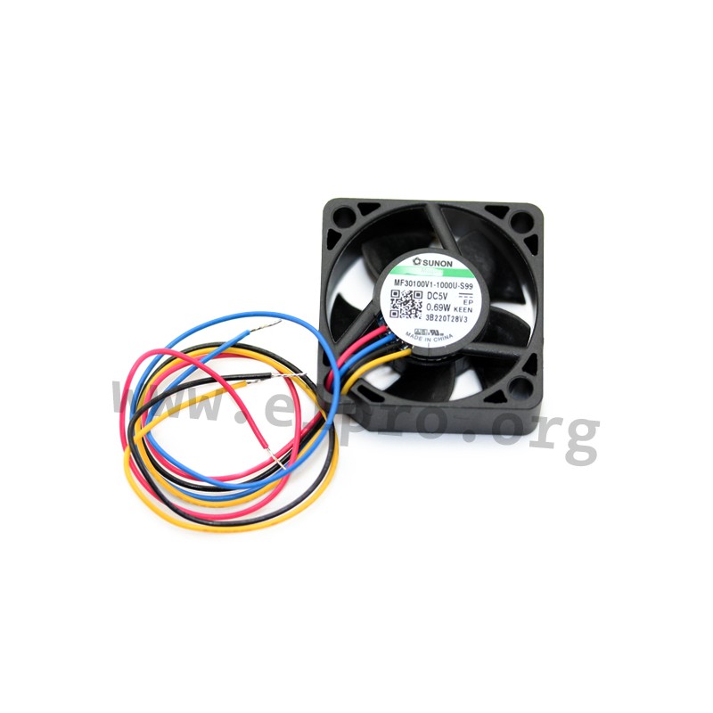 Lüfter mit den Abmessungen 30x30x10mm und einer Nennspannung von 5V DC. Diese Lüfter sind mit einem 4-poligen Gleichstrommotor ausgestattet, der über ein Vapolager verfügt. Der Rahmen sowie das Flügelrad bestehen aus gefülltem Thermoplastik (UL94V-0) und besitzen ein Magnetic Levitation System zur Geräuschreduzierung. Der Anschluss erfolgt über verzinnte Litzen UL1571 AWG28.