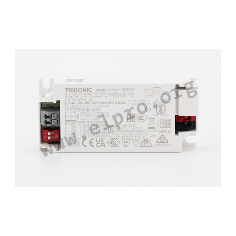 LED-Netzteile mit einer Ausgangsleistung von 35,7W. Diese Netzteile für Beleuchtung im Kunststoff Gehäuse haben einen programmierbaren und wählbaren Ausgangsstrom, sowie sie DC tauglich sind. Wir bieten den Artikel 87501084 der LC 36W 700-850mA flexC SC SNC4 Serie von Tridonic Deutschland an.