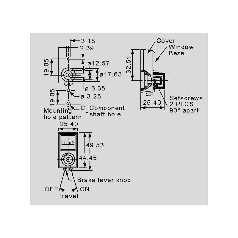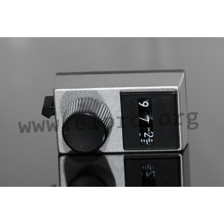 passende Drehknöpfe für Mehr-Gang-Potentiometer 534:• rechteckig 25,4x49,53mm• Digital Skalierung (3-stellig)• Oberfläche Satin Chrome Finish• Arretierungshebel