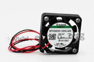 Fans with 25x25x6mm dimensions and a nominal voltage of 5V DC. These fans are equipped with a 4-pole DC motor, which has a vapour bearing system and is operated by the Magnetic Levitation System. They also have an impeller and a frame made of filled thermoplastic PBT (UL94V-0) and are connected by means of stranded wires UL1517 AWG28.