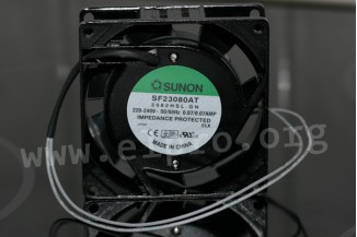 AC fans with either a 4 pole brushless motor (MA_/CF_) or a shaded-pole motor (LFA_) are available. These fans have impedance protection and come equipped with either sleeve bearings (LFA 220V G), ball bearings (LFA 220V K) or vapo bearing systems (MA_/CF_). The impellers of these fans are made from thermoplastic PBT(UL94V-0). Connection to the power supply is through wires, while their operating temperature ranges between -10°C to +70°C. Their dimensions measure at 80x80x25mm and they operate on rated voltage of 230V AC.