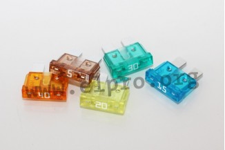 • automotive blade type fuses in a self extinguishing, transparent, color coded case made of high temperature resisitve plastic