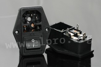 IEC insert connectors C14 with a 2-pole rocker switch and a fuse holder for 2 fuses (5x20mm)