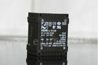 Vacuum encapsulated flat transformers with 10VA, a UI30 core and a two chamber winding. These devices are suitable for 115/230V power supplies as well as for PCB mounting and comply with EN61558 as well as VDE 0570. They are fully tested between primary/secondary winding (6000V) and have a sparking/leaking distance of at least 10mm. We offer the following types of this Hahn series: BV UI 304 0155, BV UI 304 0153, BV UI 304 0154, BV UI 304 0136, BV UI 304 0159 and BV UI 304 0173.
