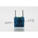 Radial type FKS capacitors with a pitch of 5mm from manufacturers such as WIMA.