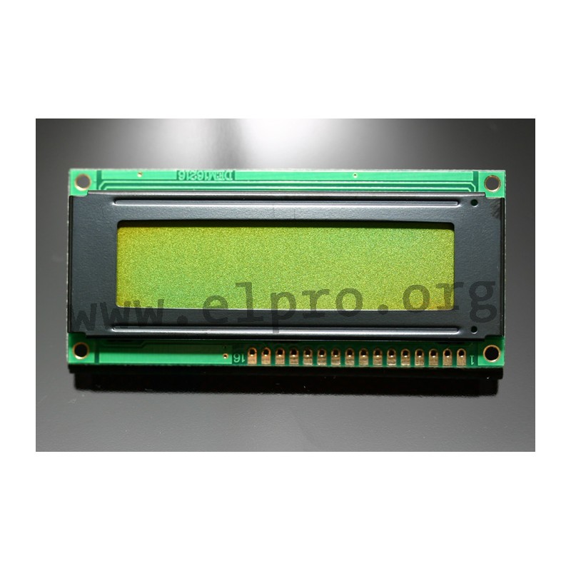 8248 DEM 16216 SYH-PY DEM16216SYH-PY DEM16216SYH-PY LCD dot matrix modules. * dot matrix modules with 2 lines and 16 characters * series DEM by Display Elektronik* series EA by Electronic Assembly* interface for 4- or 8-Bit data bus* supply voltage: 3.3 or 5V* operating temperature range: 0 to +50°C or -20 to +70°C* ending kyrill stands for cyrillic font* ending RGB stands for displays with changeable LED-background illumination in red, green or blue* EA DOGM displays have no integrated background illumination. Suitable illiminations must be ordered separately.