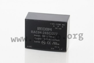 AC/DC converter modules with 4W, a universal input and a low no-load power (<50mW). These devices are suitable for PCB mounting, are protected against overload as well as short circuit and comply with EN60950-1, EN55032 as well as EN55024. We offer the following types of this Recom series: RAC04-5SC/277, RAC04-12SC/277, RAC04-24SC/277, and RAC04-12DC/277-E.