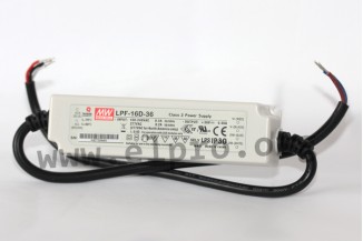 LED drivers in a plastic housing (IP30) with a constant current, 16W and a universal input. These devices are protected against overload (auto recovery), short circuit as well as overvoltage, are dimmable (external voltage 1 to 10V DC, PWM, potentiometer) and comply with EN61000-3-2, Class C, EN55015, EN61347-1, EN61347-2-13 as well as UL1310 Class 2. They have a built-in active PFC function and are suitable for LED lighting applications. We offer the following types of this Mean Well series: LPF-16D-12, LPF-16D-15, LPF-16D-20, LPF-16D-24, LPF-16D-30, LPF-16D-36, LPF-16D-42, LPF-16D-48 and LPF-16D-54.