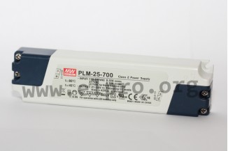 LED drivers in a plastic housing (IP30) with a universal input, a constant current, a low no-load power and 25W. These devices are protected against overload (auto recovery) as well as short circuit and are suitable for LED lighting applications. They are suitable for LED lighting applications and have a built-in active PFC function. We offer the following types of this Mean Well series: PLM-25E-350, PLM-25E-500, PLM-25E-700, PLM-25E-1050, PLM-25-350, PLM-25-500, PLM-25-700 and PLM-25-1050.