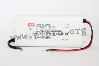 LED drivers in a plastic housing (IP42) with AC dimming, 40W and a stranded wire connection. These devices are suitable for phase control dimmers / reverse phase control dimmers as well as for LED lighting applications and comply with EN61000-3-2, class C, EN55015, EN61347-1 as well as EN61347-2-13. They are protected against overvoltage, short circuit as well as overheat and have a built-in active PFC function. We offer the following types of this Mean Well series: PCD-40-350B, PCD-40-500B, PCD-40-700B, PCD-40-1050B, PCD-40-1400B and PCD-40-1750B.