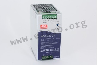 Switching power supplies in an enclosed housing with 240W, a built-in DC OK relay contact, a universal input and screw terminals (touch guard). These devices are suitable for DIN rail mounting and are protected against overload (auto recovery), overvoltage as well as short circuit. They have a single / two phase input and comply with EN50082-2, EN61000-6-2, EN62368-1, EN55032, EN61204-3 class B, EN61000-3-2 as well as EN61000-3-3. We offer the following types of this Mean Well series: WDR-240-24 and WDR-240-48.
