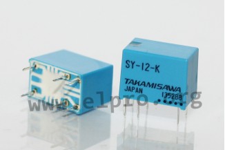 PCB relays in a 12,5x7,4x9,5mm housing with 1x changeover contact (SPDT) and 1A. These relays have gold-plated silver contacts and a high-sensivity coil with a rated power of 150 to 175mW. They are very reliable and available as a bifurcated type (SY-_W-K). We offer the following types of this Fujitsu/Takamisawa series: SY-5-K, SY-12-K, SY-24-K, SY-5W-K, SY-12W-K and SY-24W-K.