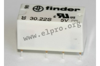 Non-polarized relays in a DIL housing with 2A and 2x changeover contacts. These components are suitable for PCB mounting and have hard gold plated contacts (AgNi). They have a sensitive DC coil and comply with relay protection type RT III (wash tight). We offer the following types of this Finder series: 30.22.7.005.0000, 30.22.7.005.0020, 30.22.7.006.0000, 30.22.7.012.0010, 30.22.7.012.0020, 30.22.7.024.0010, 30.22.7.024.0020, 30.22.9.006.0000, 30.22.9.006.0000, 30.22.9.012.0010 and 30.22.9.024.0000.