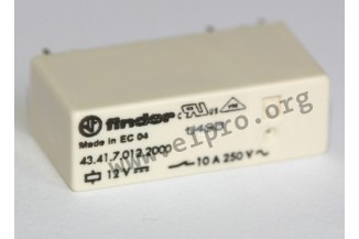 Relays in a 30,2x10,2x15,4mm housing with 10A and an SPDT contact. These devices comply with RTII (flux proof) and have a very low coil consumption (0,25W). They have a protective separation between coil and contacts according to VDE0160, EN50178, EN60204 as well as EN60335 and a sensitive DC coil. We offer the following types of this Finder series: 43.41.7.012.2000, 43.41.7.012.0000, 43.41.7.024.2000, 43.41.7.024.0000, 43.41.7.012.4000 and 43.41.7.024.4000.