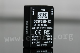 Regulated DC/DC converters in a DIL24 metal housing with 5W, a built-in EMI filter and an input voltage ratio of 2:1. These devices are suitable for PCB mounting and are protected against overload as well as short circuit. They have a high reliability and comply with EN55032 class B. We offer the types SCW05C-12 and DCW05A-12 of this Mean Well series.