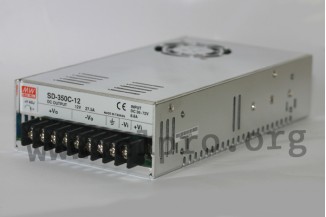 DC/DC converters in an enclosed housing with 350W, a built-in DC fan, a regulated output voltage and screw terminals. These devices have a galvanic isolation of input/output and are protected against overload (auto recovery), overvoltage, overtemperature as well as short circuit. They have an input voltage ratio of 2:1 and comply with EN55032 class B. We offer the following types of this Mean Well series: SD-350B-5, SD-350B-12, SD-350B-24, SD-350B-48, SD-350C-5, SD-350C-12, SD-350C-24, SD-350C-48, SD-350D-5, SD-350D-12, SD-350D-24 and SD-350D-48.