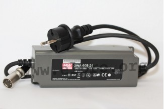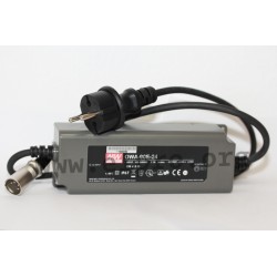Desktop switching power supplies in a plastic housing (IP67) with 90W, a low no-load power, energy efficiency Level VI, insulation class II and a universal input. These devices have a built-in active PFC function and are protected against overload, overtemperature, overvoltage as well as short circuit. They have a fanless design and comply with EN61558-1, EN61558-2-16, EN60335-1, EN55032 class B, EN55014-1, EN61000-3-2 as well as EN61000-3-3. We offer the following types of this Mean Well series: OWA-90E-12, OWA-90E-15, OWA-90E-20, OWA-90E-24, OWA-90E-30, OWA-90E-36, OWA-90E-42, OWA-90E-48 and OWA-90E-54.
