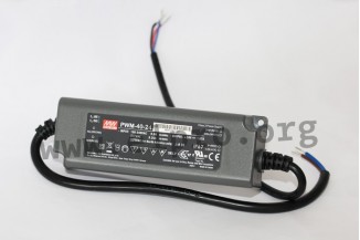 LED drivers in a plastic housing (IP67) with a 3 in 1 dimming function (external voltage 0 to 10V DC, PWM, resistive), a PWM output voltage and 40W. These devices are suitable for LED lighting applications and comply with EN61000-3-2, class C, EN55015, EN61347-1 as well as EN61347-2-13. They are protected against overload (auto recovery), short circuit as well as overvoltage and have a built-in active PFC function. We offer the following types of this Mean Well series: PWM-40-12, PWM-40-24, PWM-40-36 and PWM-40-48.