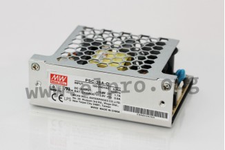 Switching power supplies in an open frame (PSC-35_) and enclosed type housing (PSC-35_-C) with 35W, a UPS function (battery charger), a power fail signal, a battery low signal and a universal input. They have a battery low protection and are protected against overload (auto recovery), overvoltage as well as short circuit. They have a fanless design and comply with UL/EN62368-1, EN55032 class B, EN61000-3-2 as well as EN61000-3-3. We offer the following types of this Mean Well series: PSC-35A, PSC-35B, PSC-35A-C and PSC-35B-C.