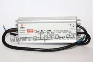 LED drivers in an aluminium housing (IP67) with a constant current / constant voltage (mixed mode), a 3 in 1 dimming function (1 to 10V DC, PWM, 100kOhm potentiometer) and 40W. These SELV compliant devices are protected against overload (auto recovery), overtemperature, overvoltage as well as short circuit and are suitable for LED lighting applications. They comply with EN61347-1, EN61347-2-13, EN55015, EN61000-3-2 class C, EN61000-3-3 as well as EN61547 and have a control line as well as a built-in active PFC function. We offer the following types of this Mean Well series: HLG-40H-12B, HLG-40H-15B, HLG-40H-20B, HLG-40H-24B, HLG-40H-30B, HLG-40H-36B, HLG-40H-42B, HLG-40H-48B and HLG-40H-54B.
