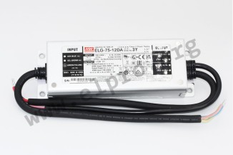 LED drivers in a metal housing (IP67) with a constant current, a DALI interface, 75W and a protective earth conductor PE. These devices are suitable for LED lighting applications and are protected against overload (auto recovery), short circuit, overtemperature as well as overvoltage. They comply with EN61347-1, EN61347-2-13, EN55015, EN61000-3-2 class C, EN61000-3-3, EN61547 as well as 6kV surge immunity level and have a built-in active PFC function. We offer the following types of this Mean Well series: ELG-75-12DA-3Y, ELG-75-24DA-3Y, ELG-75-36DA-3Y, ELG-75-42DA-3Y and ELG-75-48DA-3Y.