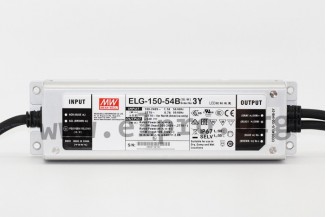 LED drivers in a metal housing (IP67) with a constant voltage, a protective earth conductor PE, a 3 in 1 dimming function (0 to 10V DC, PWM, 100kOhm potentiometer) and a constant current. These devices are suitable for LED lighting applications and comply with EN61347-1, EN61347-2-13, 6kV surge immunity level, EN55015, EN61000-3-2 class C, EN61000-3-3 as well as EN61547. They have a built-in active PFC function and are protected against overload (auto recovery), short circuit, overtemperature as well as overvoltage. We offer the following types of this Mean Well series: ELG-150-12B-3Y, ELG-150-24B-3Y, ELG-150-36B-3Y, ELG-150-42B-3Y, ELG-150-48B-3Y and ELG-150-54B-3Y.