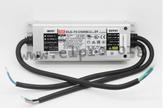 LED drivers in a metal housing (IP67) with a constant current, a protective earth conductor PE and 75W. These devices are protected against overload (auto recovery), overtemperature, short circuit as well as overvoltage and comply with EN61347-1, EN61347-2-13, EN55015, EN61000-3-2 class C, EN61000-3-3, EN61547 as well as a 6kV Surge Immunity Level. They are suitable for LED lighting applications and have a built-in active PFC function. We offer the following types of this Mean Well series: ELG-75-C350B-3Y, ELG-75-C500B-3Y, ELG-75-C700B-3Y, ELG-75-C1050B-3Y and ELG-75-C1400B-3Y.