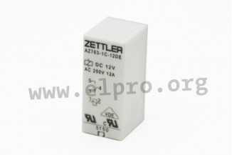 Zettler PCB relays, 12A, 1 changeover or 1 normally open contact, AZ763 series