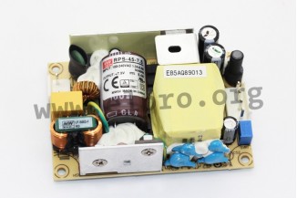 Open frame type switching power supplies with 45W, a low no-load power (<0,1W), a universal input and pin strips for nylon crimp terminals. These devices are suitable for medical applications (2xMOPP) and comply with EN60601-1, EN60335-1, EN61000-3-2 as well as EN61000-3-3. They are suitable for an operating altitude of up to 4000m and are protected against overload (auto recovery), overvoltage as well as short circuit. We offer the following types of this Mean Well series: RPS-45-3.3, RPS-45-5, RPS-45-7.5, RPS-45-12, RPS-45-15, RPS-45-24 and RPS-45-48.