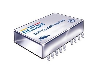 These converter modules in DIP/DIL24 housing are suitable for direct PCB mounting. Their input voltage ratio is 4:1 and the isolation voltage is 1.6kV AC. They are equipped with an over current and over voltage protection and there is no minimum load required. We are offering the following articles by Recom: RP12-2405SAW, RP12-2412SAW and RP12-2415DAW.