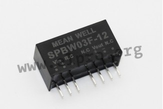 Regulated DC/DC converters in a SIL6 housing with 3W, a remote ON/OFF control and an input voltage ratio of 4:1. These devices require no minimum load and are protected against short circuit (continuous), input undervoltage as well as overload. They are suitable for PCB mounting and comply with EN55032 class B (without additional components). We offer the following types of this Mean Well series: SPBW03F-03, SPBW03F-05, SPBW03F-12, SPBW03F-15, SPBW03G-03, SPBW03G-05, SPBW03G-12 and SPBW03G-15.