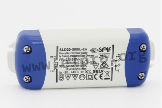 Flickerfree LED drivers in a plastic housing (IP20) with 20W, a constant current and protection class II. These SELV compliant devices are dimmable and are protected against overload, overtemperature, overvoltage as well as short circuit. They are suitable for LED lighting applications and comply with EN55015, EN61347-1 as well as EN61347-2-13. We offer the follwing types of this Self series: SLD20-350IL-ES, SLD20-500IL-ES and SLD20-700IL-ES.